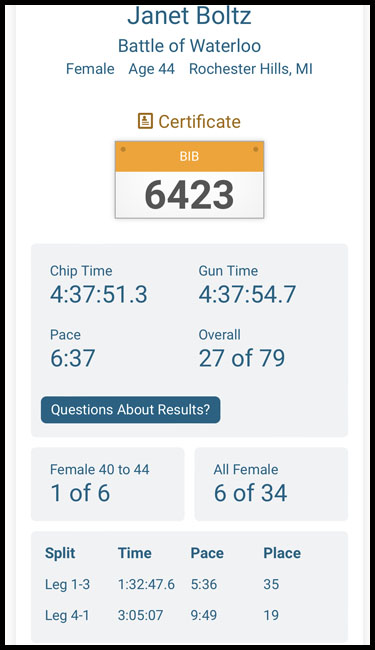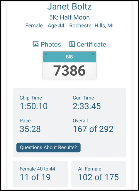 Once again, I felt very accomplished for completing the distance no matter what my time was, but of course I was excited to do 14 minutes better than I had the prior year!