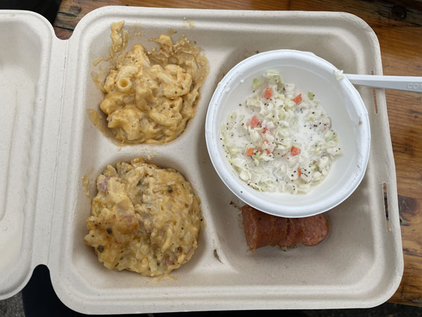 Amy and I finally caught up with each other in the brewery and eventually we went out to the food truck to collect the meals we had signed up for. By then the brewery was too full so we had to sit outside. Luckily the heat lamps worked well enough! The BBQ sampler plate was so good that half of it was gone before I even thought to take a picture. It was a great environment for a post-race celebration and we enjoyed hanging out for a bit before heading home.