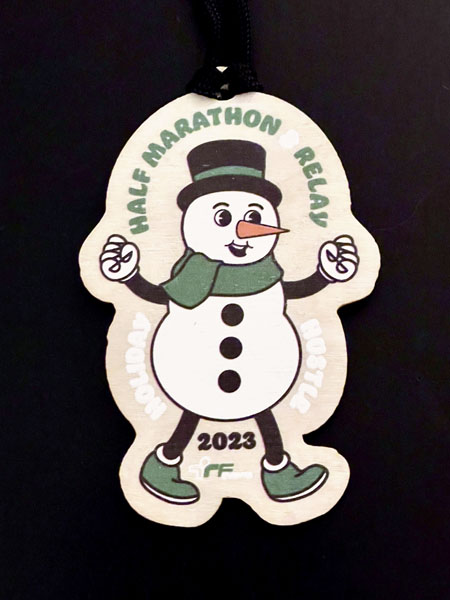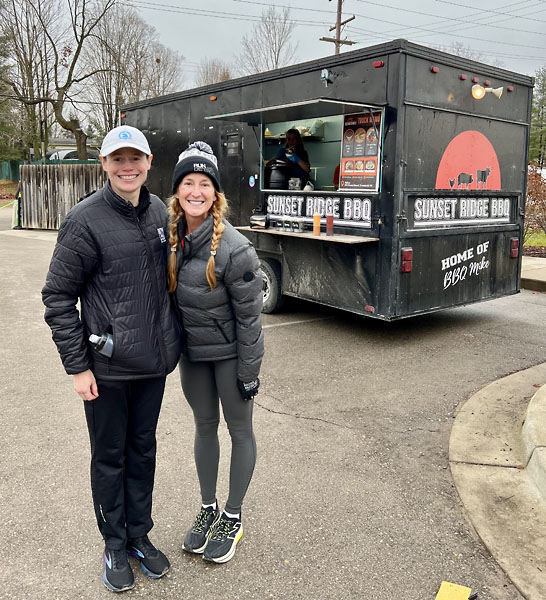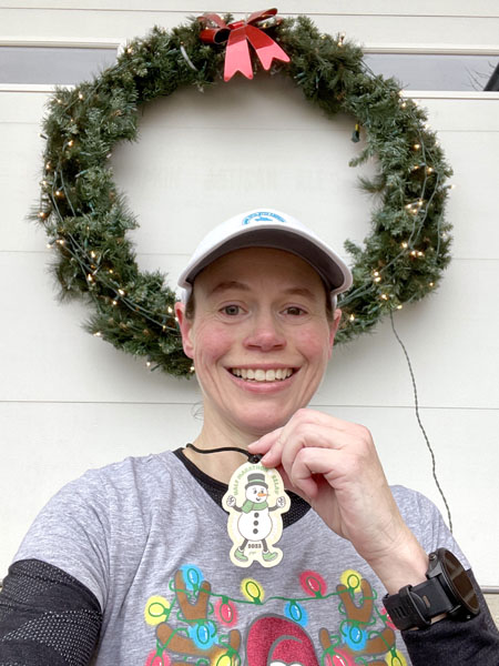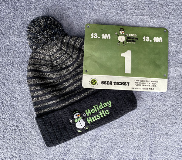 The Holiday Hustle Half Marathon is a race that I looked into last year but it sold out before I committed to it. When I talked to my friend Amy at the end of October this year, she told me that she had signed up for it and reminded me that it could sell out. I’m often wary about signing up for races too far in advance when winter weather can be a factor, and I knew it could be on December 2, but I decided to go for it and signed up a month before the race. There were several options for race swag and I chose to get a cute beanie rather than collect another shirt. I was excited to see that there was also an option to add on a post-race meal from Sunset Ridge BBQ. The hat, lunch, and knowing I’d get to hang out with Amy got me even more excited about the race.