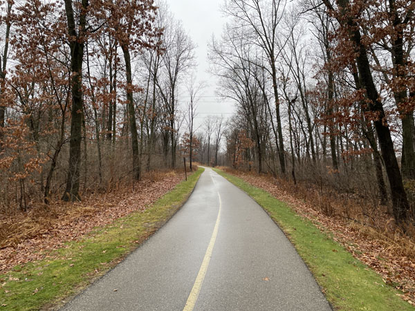Apparently plenty of other people who lined up near me planned to run faster than 1:45 as well because it was a fast start and I found myself caught up in the flow of the people around me. My first mile was a 7:37. I didn’t intend to start that fast and it probably wasn’t the smartest move. We ran through a little bit of mud as we ran away from the brewery, and the boardwalk suddenly felt a little more slick when I was running faster. I still didn’t have any issues with actually slipping but I was wary. Fortunately the path was mostly paved after the first mile. We ran somewhere around 4.5 miles along the Border to Border Trail which took us to Hudson Mills Metropark.