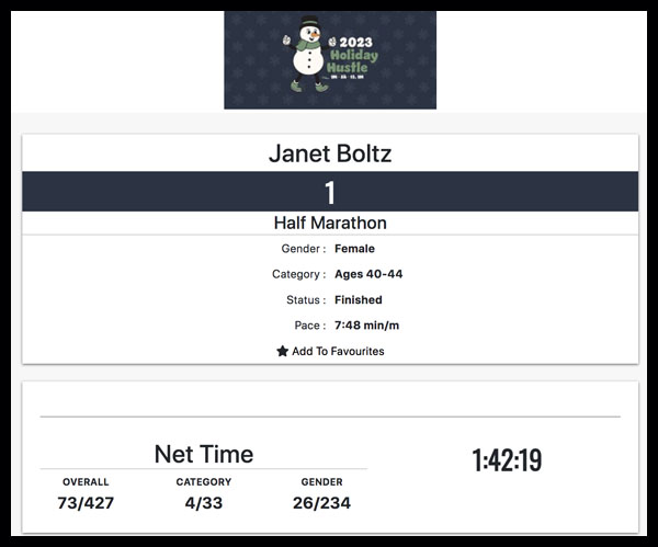 This wasn’t one of my smoother races but I’m glad I did it. It was nice to check out another section of the Border to Border Trail and to do a lap around Hudson Mills Metropark. I might have to keep this route in mind for a future run or bike ride. I may be a little iffy about signing up early for this race knowing that any snow or cold temps could make the boardwalks more risky than I like. It’s a chance you take with this race since it has sold out in advance two years in a row. I can understand why – it was a nice, challenging course with a fun party included. Even though I may have been a little ambitious with my pacing and went through some suffering, it was nice that my fifth (and last) half marathon of the year ended up being my fastest.
