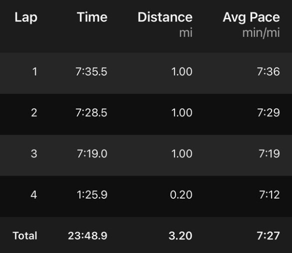 When I had half a mile or so left, my stomach settled enough for me to pick up the pace a bit. I still hurt but I was almost there and had enough freshness in my legs to give a final push. I came close but couldn’t quite get under 1:50.