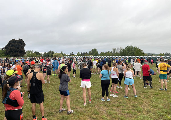 Saturday, May 25 was race day and an early morning for Tom and me. Katie was running the 10K and got to leave later since she didn’t need to catch a bus to the start of the half before 6am like we did. With a 7:30 start, we had plenty of time to stand around at the edge of a tent in the field, then we ventured to the bathroom lines before they got crazy long.