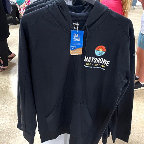 The expo had a lot of cool Bayshore-branded merch. I was especially excited that they had Brooks clothing items. I knew I wanted the tank top so maybe it’s for the best that the sweatshirts were too big because I couldn’t resist that cool logo otherwise.
