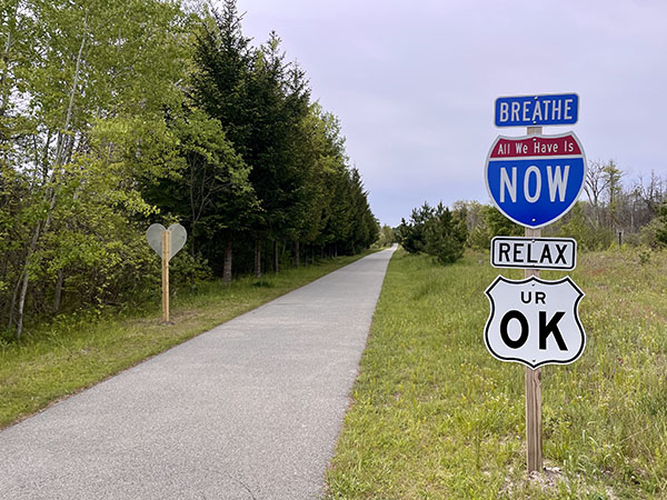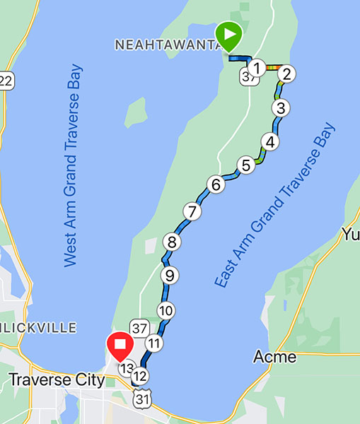 I hadn’t truly “raced” the half marathon so my legs felt fine. I knew I could get around 30 miles with an out-and-back route, and I added a little extra by riding toward Traverse City before heading up the trail to Suttons Bay.