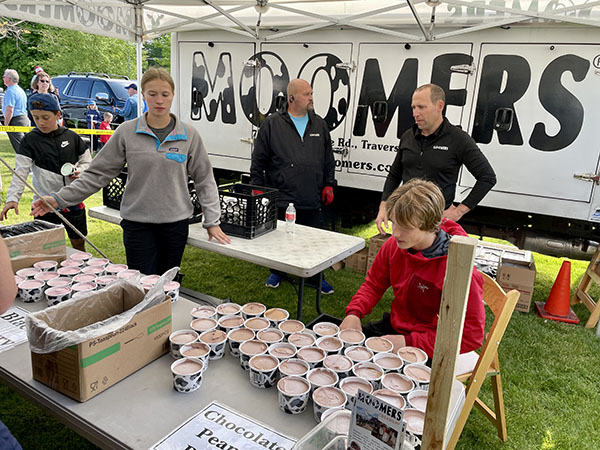I still didn’t feel great but at least I had finished. I realized I was going to get cold pretty quickly so I had to bypass the food line and maneuver under some tape to get to gear check first. Once I was able to stay warm, the first priority was to get in line for Moomers ice cream! The scenery is a pretty big perk at this race but getting Moomers at the end is right up there.