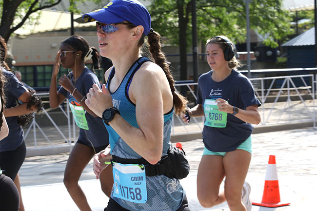 I ended up running the first mile in 8:05 which was pretty good since there was some weaving involved trying to work my way around other people. People who have participated in the race 30+ years started first and we tend to catch up to some of those runners/walkers pretty quickly. It’s always really inspiring to see them out there and many of them have something on their shirts that says how many years they’ve done the race. I smiled when I passed the woman dressed in a leopard print outfit who I’ve probably seen every time I’ve run Crim.