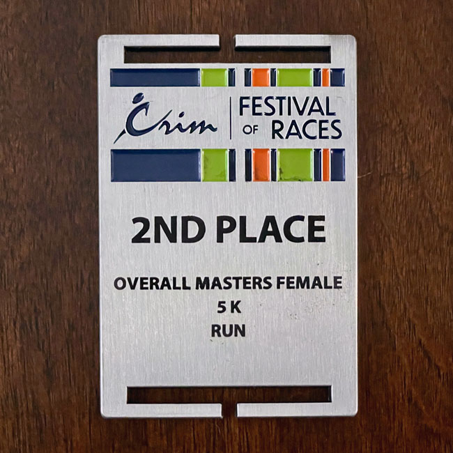 I was also surprised by my placement. The results on race day showed me as first in my age group and the third female overall, but a day later someone else’s results must have been accounted for and I shifted down a spot. Still – I guess it was a good idea to run the 5K after all. Most of the really speedy people clearly stuck with the 10-mile race alone which helped me place higher!