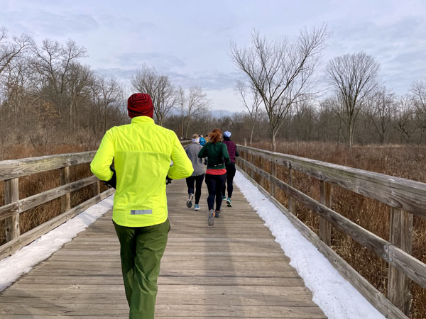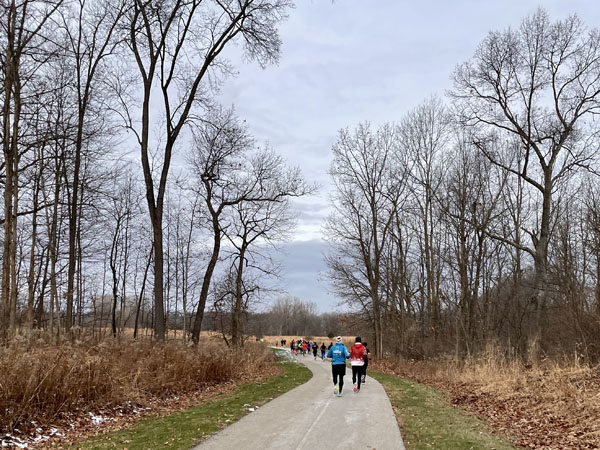 Last year I realized that several boardwalks along the course could be dicey in certain weather conditions. I was wary about some spots that were slightly slick last year so that was a concern of mine coming into the race this year since we had gotten some snow a few days earlier. Fortunately everything had melted and our route was dry.