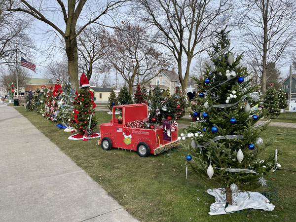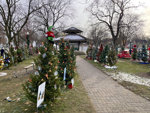 Last year was the first time I ran this race and fortunately I parked in an area that took me past Monument Park where I saw a big batch of porta potties. 1-mile and 5K races start and finish around the park later in the afternoon while the half marathon takes place several blocks away at Erratic Ale. That means most of the runners don’t venture over to the park and there’s no line to use the bathrooms. After collecting my bib outside the brewery I headed to the park and I was excited to see that it was so festive. I had heard something on the radio about lighting 85 Christmas trees in the park the night before the race yet I hadn’t imagined exactly what I would find there. Various groups and companies had decorated their own trees with unique themes.