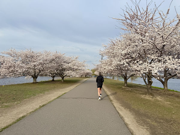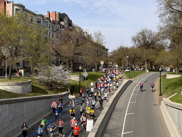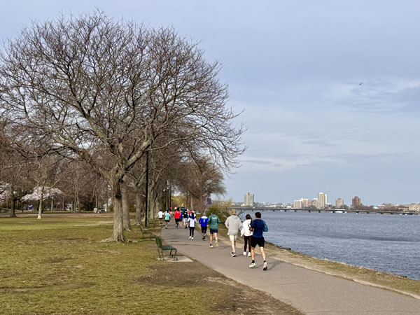 I started the day with a run along the Charles River on my way to spectate the 5K and caught up with my friend Jason for a few minutes on the way there. It seems like everything is always in bloom by marathon weekend and it was gorgeous out there.