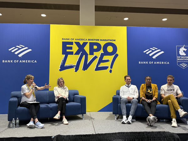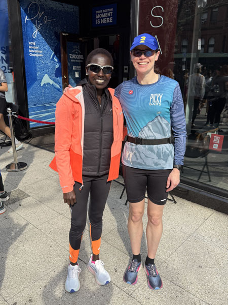 I followed my usual routine of flying out early Friday morning and returning home on Tuesday so I could spend several days in town and squeeze in a bunch of the activities that occur over marathon weekend. I was thrilled to find out that Mary and Jason, a couple I know from Infinite Multisport Triathlon Club, were going to be on the same flight. We got a chance to sit and chat before boarding and I mentioned a panel that I was going to attend. A woman sitting by us jumped into the conversation and turned out to be Des Linden’s mother-in-law! It was fun to talk to her since Des is an inspiration and rock star to us runners.