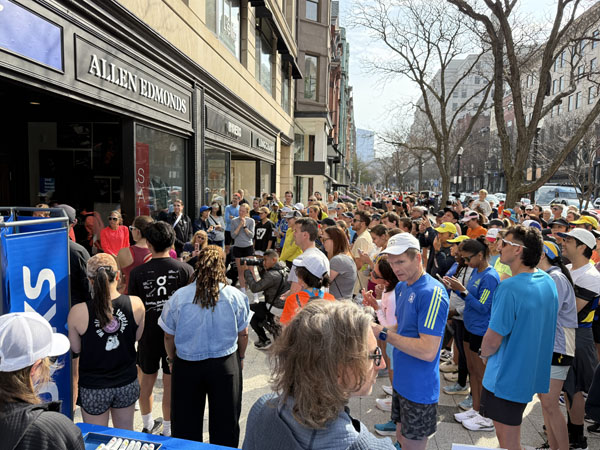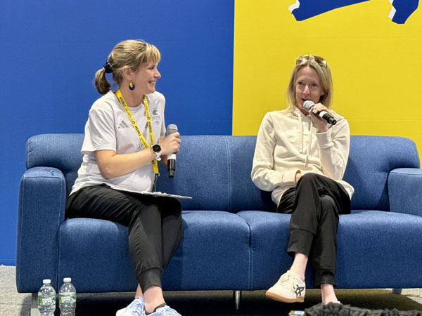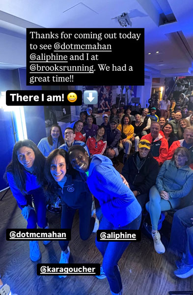 I usually opt to rest the day before a big race rather than do a shakeout run. I worry that my ankles or something else could get tweaky and I feel more comfortable if I rest. Instead, I still got some miles in by walking. I started out by walking back to the Brooks Hyperion House on Newbury for a panel that started at 11:00. Kara Goucher moderated a talk with Aliphine Tuliamuk and Dot McMahon. It was fun to meet Aliphine the day prior, and I see Dot out on my local trail sometimes because she runs for the Hansons team. She’s quite the inspiration and is still killing it at 48 years old. I was glad I could be there to see the three amazing women chat.