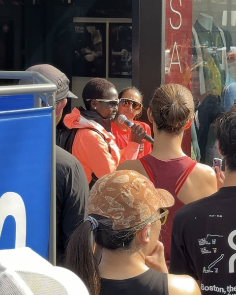 After I saw Laurel I swung by the Brooks Hyperion House on Newbury in time to see Des Linden and some other elite Brooks runners who were going to lead a shakeout run. Since I already finished my run, I stuck around and got to chat with the awesome Aliphine Tulimuk.