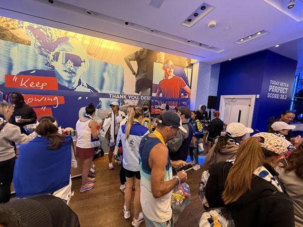 After collecting my medal my stomach started to revolt – a common occurrence for me after a big race. After a bathroom stop I collected my warm clothes at gear check. I debated if my stomach was going to hold up so I could go to the Brooks Hyperion House next. It was iffy at moments but fortunately it held up and I went back to Newbury.