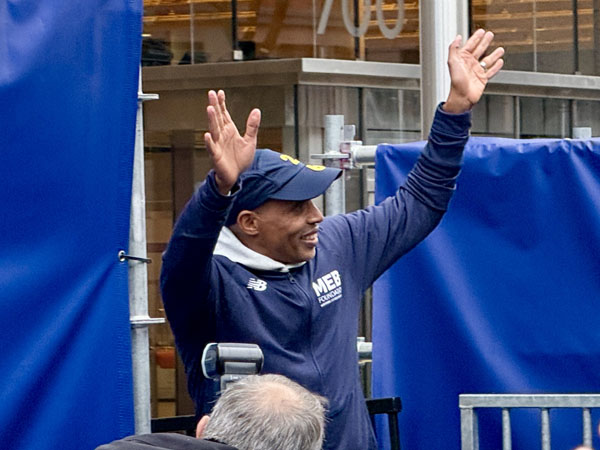 I spotted Meb Keflezighi and cheered for him while wearing the same “26” hat he was wearing, created for his foundation. He tapped his hat, smiled, and gave me a thumbs up.