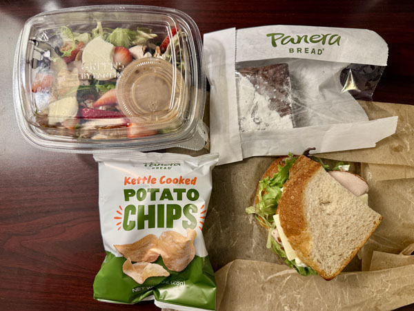 I went back to my room after that, still riding the high and not limping at all. I grabbed more food at Panera on my way because I suspected that I might be done for the day and not want to go back out later. Before showering, I worked on some of the snacks and drinks I received at the finish line, then dug into my other treats as I scrolled through my phone and caught up on messages.
