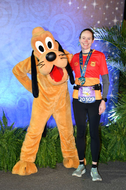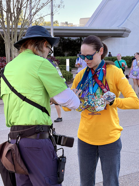 I took a couple photos then happened to glance at my phone and see the alert that my new friend Tamara had just crossed the finish line. The race people like to clear people out of the finishing area so it doesn’t get too congested, so I tried to stick around by stretching while I was on the lookout for Tamara.