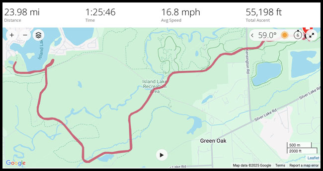 For the Olympic race we rode an extra mile or two past the main turnaround just for the first loop so we could add extra distance. Unfortunately, that section of road is the worst. It’s pothole central. Sometimes I could go around patches when the road was deserted enough but sometimes there was no avoiding the bumps. I had to brake in one section because a truck went by on my left which forced me right into an awful patch. I’ve been doing races from this park for years and it seems like it’s a given that we’ll hit some rough patches. I wish they would fix the darn roads already!