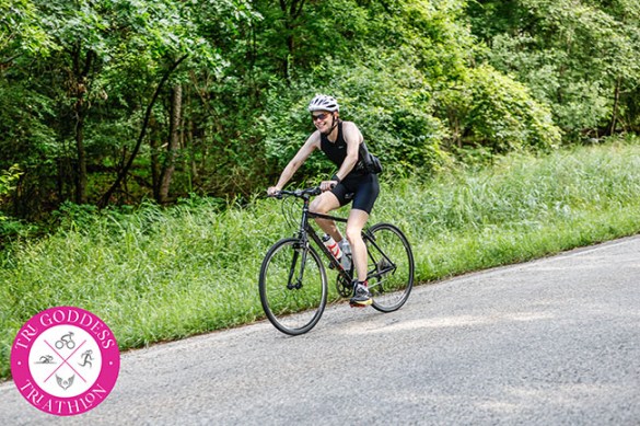 Again, because I didn’t know where the official transition timing was placed, my watch and the official results have two different times. I counted the run up the hill as part of my swim and didn’t start the transition until I got to the actual transition area. In that case, I only took 1:27 according to my watch which is super speedy for me. Not having a wetsuit makes it a whole lot faster! Officially, I was down for a 2:58 transition.