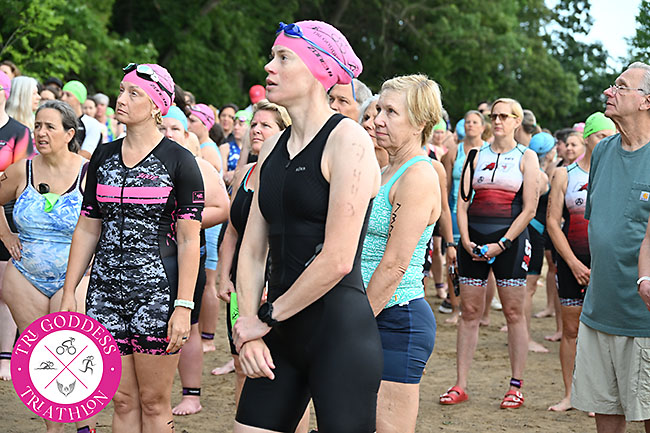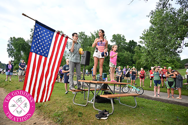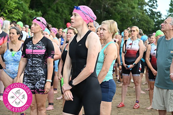 During the meeting I got to see my friend Mary, who I also know thanks to Epic Races. She was doing the sprint distance and because she was camping at the park, she would hang around and I’d get to see her afterward even though I would finish long after she was done. Sweet Stella sang the national anthem and when she forgot some of the words, everyone jumped in and sang the rest of the song together. It was just another example of the supportive vibe that surrounds this race. When it was time to kick things off with the Olympic race, random women gave each other high-fives along with messages of encouragement. I loved it.