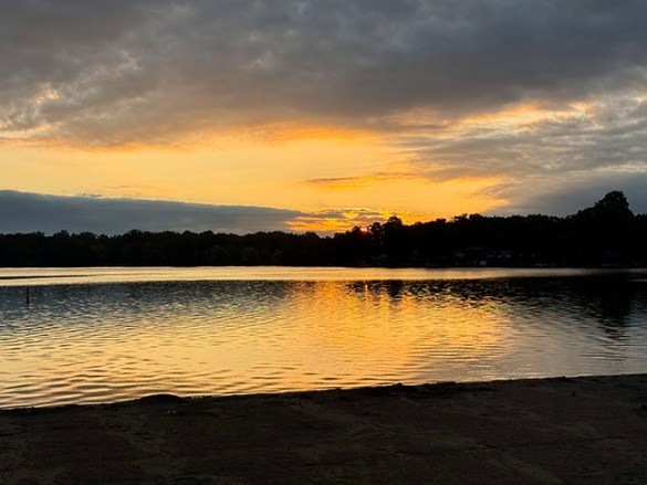 Tri Goddess Tri takes place at the Portage Lake Unit of Waterloo State Recreation Area in Grass Lake. It’s an hour and a half away from me so at least the sun rises early enough this time of year that I had daylight for a good portion of my drive. I got to the park around 6:00 and took my stuff right into the transition area where I was able to grab a spot at the end of a rack for Olympic athletes. I was early enough to check in quickly at packet pickup then I had to go catch the sunrise just before the sun broke over the trees.