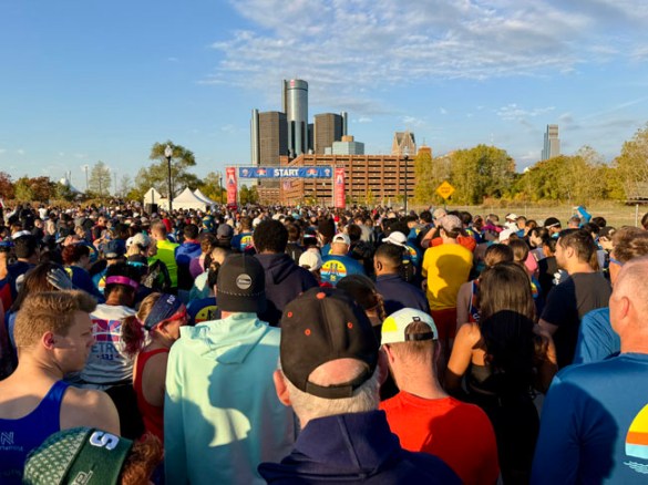 There was a lot of energy from the crowd once we left the tunnel and plenty of spectators lined Jefferson. We ran past Joe Louis’ “fist” and toward the expo center.