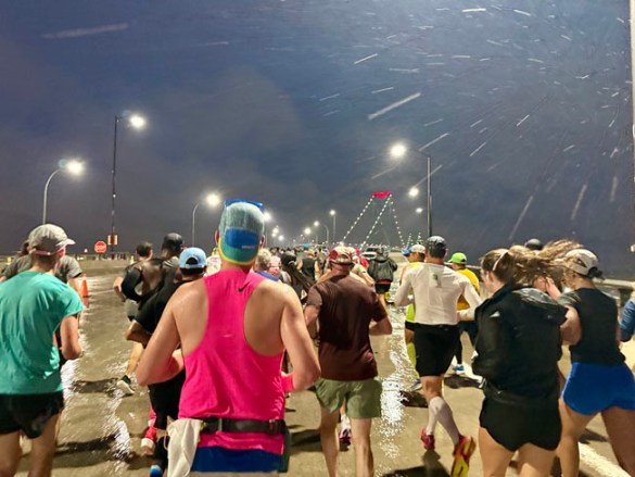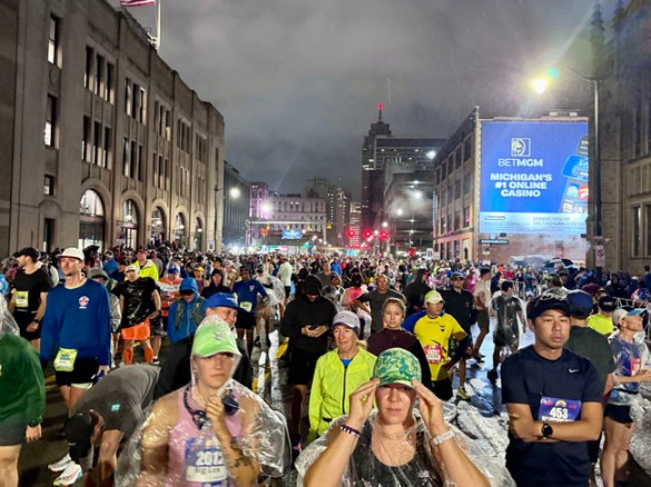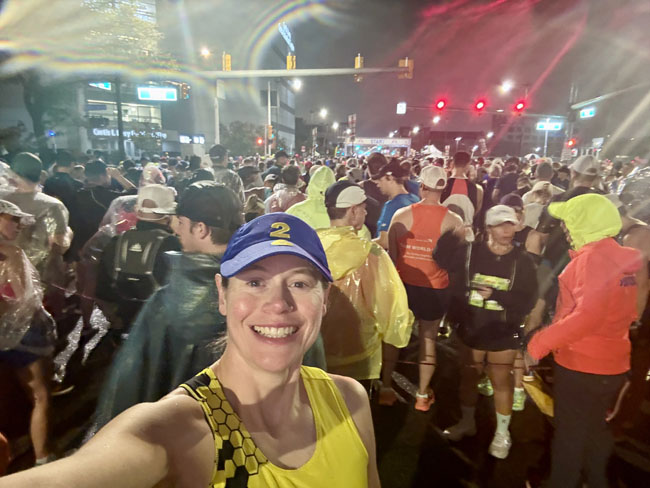Since this was my first time doing the race I didn’t know how congested or tricky it may be trying to get to my corral. I entered from the south side and went all the way up to corral B without any issue about 20 minutes before the start. I had a “throwaway” raincoat from the Salvation Army which served me well for a while, then I shed it five minutes before the start.