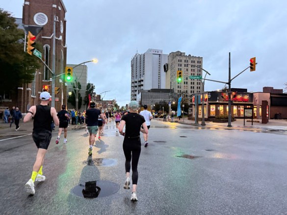 The crowd support was great along certain stretches in Windsor and I was really drawn to a Golden Retriever who was intently staring up at its owner, still as a statue. It all made sense when I passed by and saw the person holding a box of Timbits from Tim Hortons.