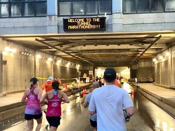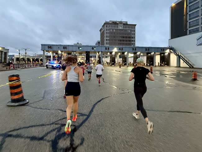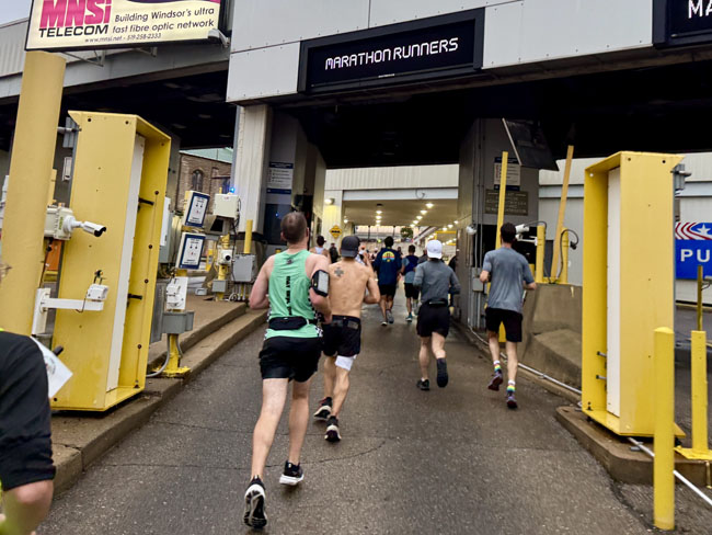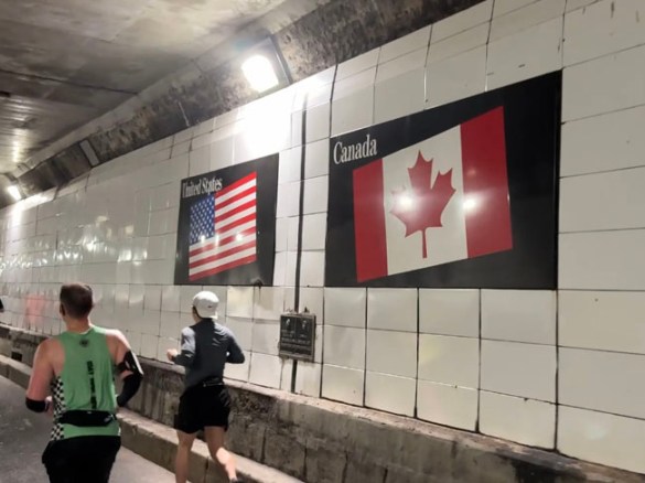 We spent about three miles in Windsor before it was time to run the “underwater mile” through the tunnel. It was a pretty cool experience going through the entry lanes where the signs had messages specific to us!