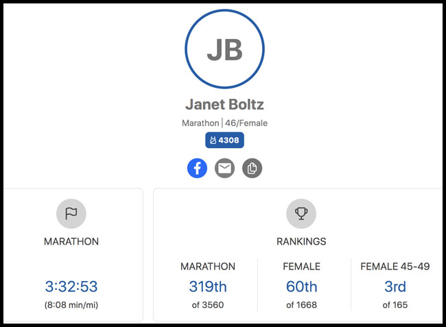 I may always aim for the big goal of a 3:30 marathon, but I was thrilled to run 3:32:53. It was my second fastest marathon! Not bad in some challenging conditions!