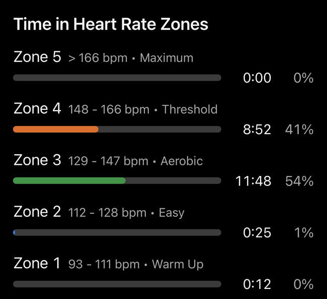 I was pretty shocked when I looked at my Garmin stats and found that I didn’t spend ANY time in the red zone during this race. I usually hit zone 5 during many of my regular training runs and I didn’t during the race?! I swear I was breathing pretty heavily but apparently I could have been pushing a lot harder! I know I have more potential in the 5K and need to work on trying to reach it.