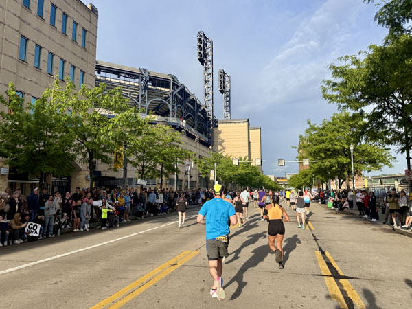 I’ve only had success sticking with a pace group a couple of times but this wasn’t one of those times. Despite being a couple people behind the pacer in the corral, I lost him immediately in the bustle of the start. I was able to get moving at my ideal pace fairly easily and ran the first mile in 7:51 yet I still couldn’t catch the pacer.