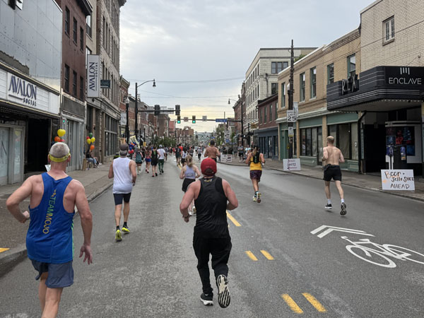 Prior to the start, race director Eva Solomon made an announcement about a narrow spot due to construction. Unfortunately I didn’t realize that until later because the guys next to me in the corral were talking so loudly I couldn’t hear anything she said. As we ran down State Street, we shifted to the sidewalk to get around the torn-up portion of the street. It didn’t get too clogged thanks to the wave start staggering runners every few minutes.