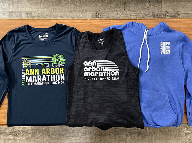 The official race shirt, a tank that I bought from Fleet Feet, and a hoodie for being an Epic Ambassador
