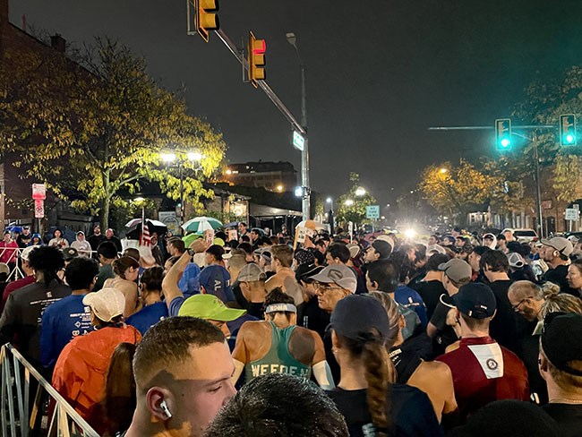 I caught up with my photographer buddy Greg Sadler for a bit, jogged a mile to warm up, then headed to gear check to leave warm clothes for after the race. I didn’t time things very well because there was a bit of a line and only 10-15 minutes until the start of the race. That meant I had to weasel my way through the corral of people at the last minute to attempt to get closer to the front. I could only make it so far before it was too congested and I’d just have to start where I could. I had thought it would be ideal to start near the 8:00 pacer but there was no chance I could find them or get to them through the mob with over 1,000 people starting at the same time between the half and full marathons.
